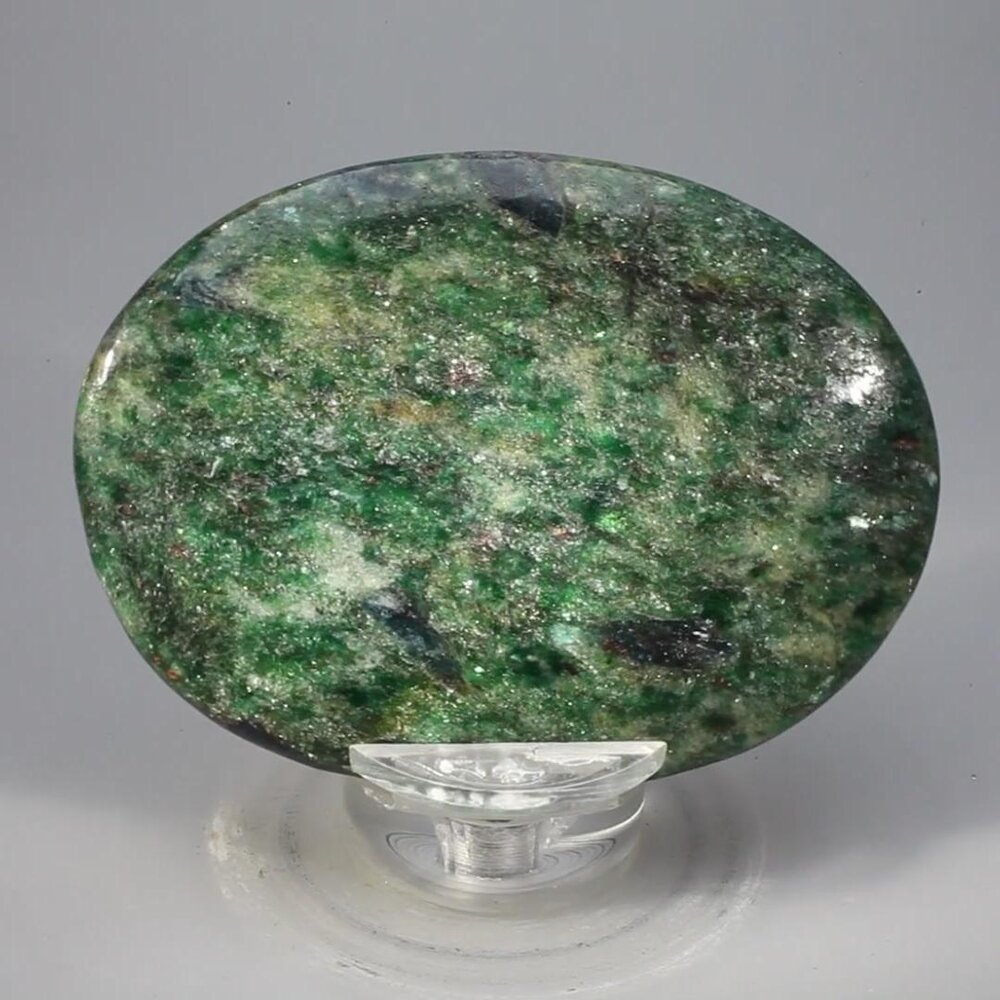 Fuchsite gets its wonderful green colour from the chromium it contains. The colour ranges from a pale, silvery shade to a deeper green that lifts and revives the spirits. Fuchsite is said to help solve problems. It is also believed to help us see and accept the flaws in people, whilst retaining a compassionate touch.