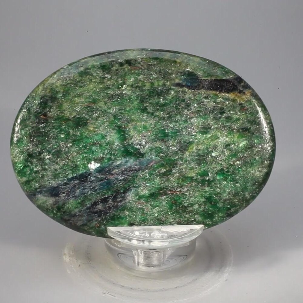 Fuchsite gets its wonderful green colour from the chromium it contains. The colour ranges from a pale, silvery shade to a deeper green that lifts and revives the spirits. Fuchsite is said to help solve problems. It is also believed to help us see and accept the flaws in people, whilst retaining a compassionate touch.