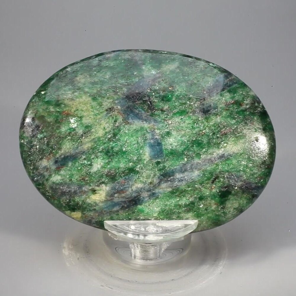 Vibrant, silvery green Fuchsite Mica, iridescent shimmers of Blue Kyanite and flecks of lustrous Red Almandine Garnet make the Trinity Stone a desirable gift or collectors item.