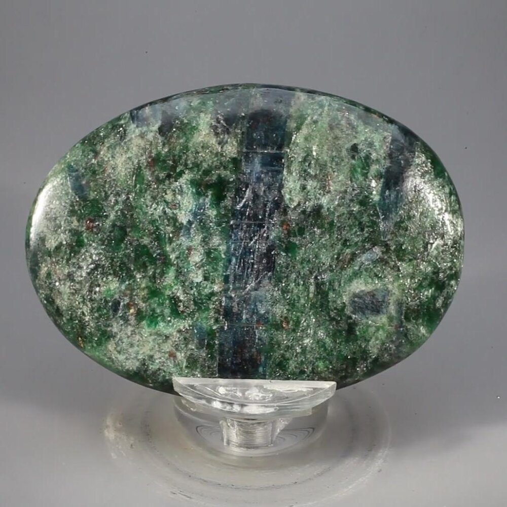 This is a lovely example of Trinity Stone, a rare beauty, containing the properties and energies of 3 minerals Fuchsite Mica, Blue Kyanite and Almandine Garnet.