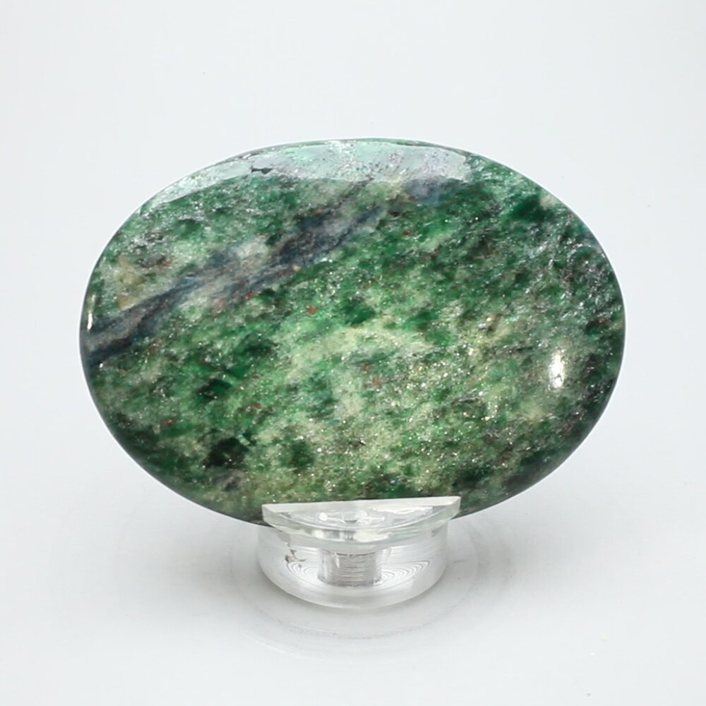 Fuchsite gets its wonderful green colour from the chromium it contains. The colour ranges from a pale, silvery shade to a deeper green that lifts and revives the spirits. Fuchsite is said to help solve problems. It is also believed to help us see and accept the flaws in people, whilst retaining a compassionate touch.