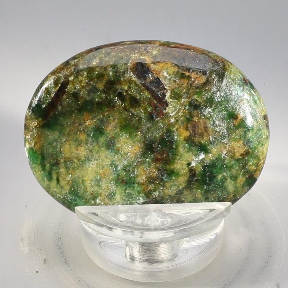 Vibrant, silvery green Fuchsite Mica, iridescent shimmers of and flecks of lustrous Red Almandine Garnet make the Trinity Stone a desirable gift or collector's item.