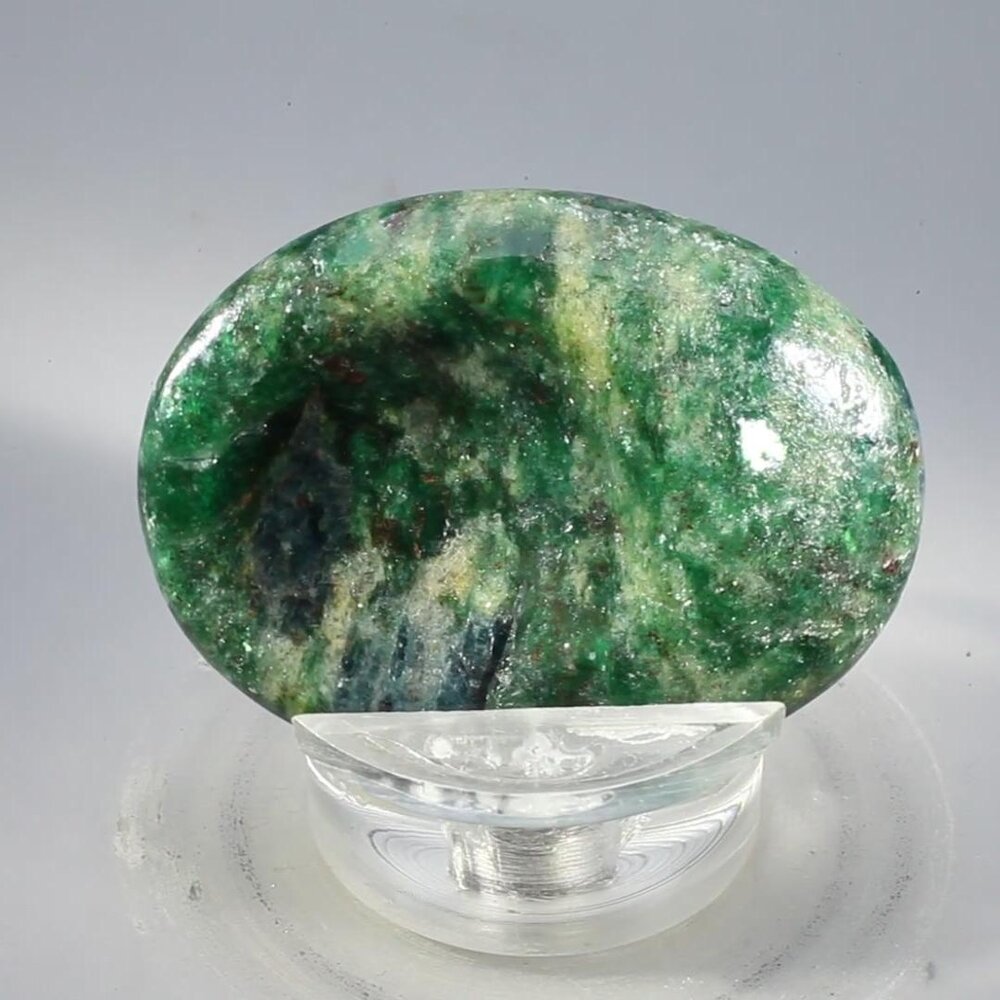 Vibrant, silvery green Fuchsite Mica, iridescent shimmers of and flecks of lustrous Red Almandine Garnet make the Trinity Stone a desirable gift or collector's item.