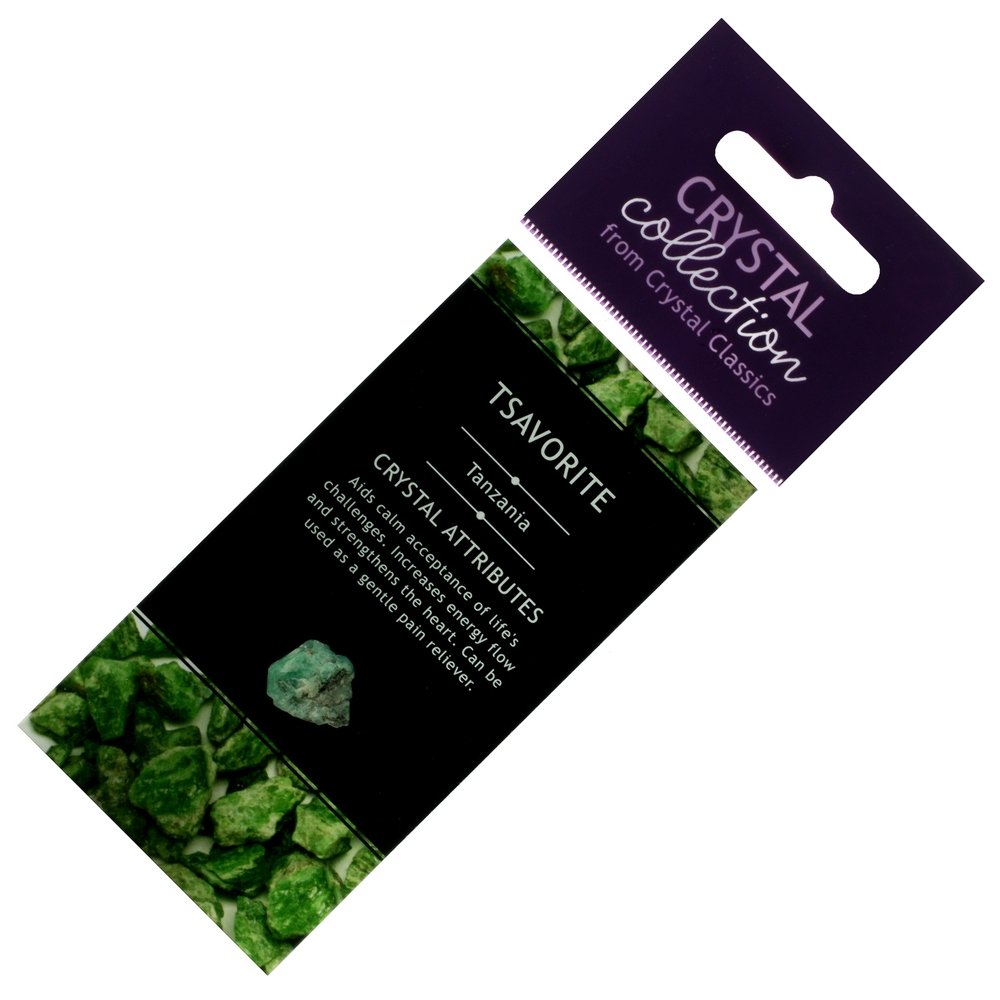 This crystal comes with a handy reference card describing all key mineral properties and crystal healing attributes. For more information visit our Tsavorite Information Page.