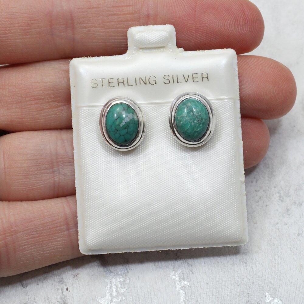 Turquoise 925 Silver Oval Earrings.