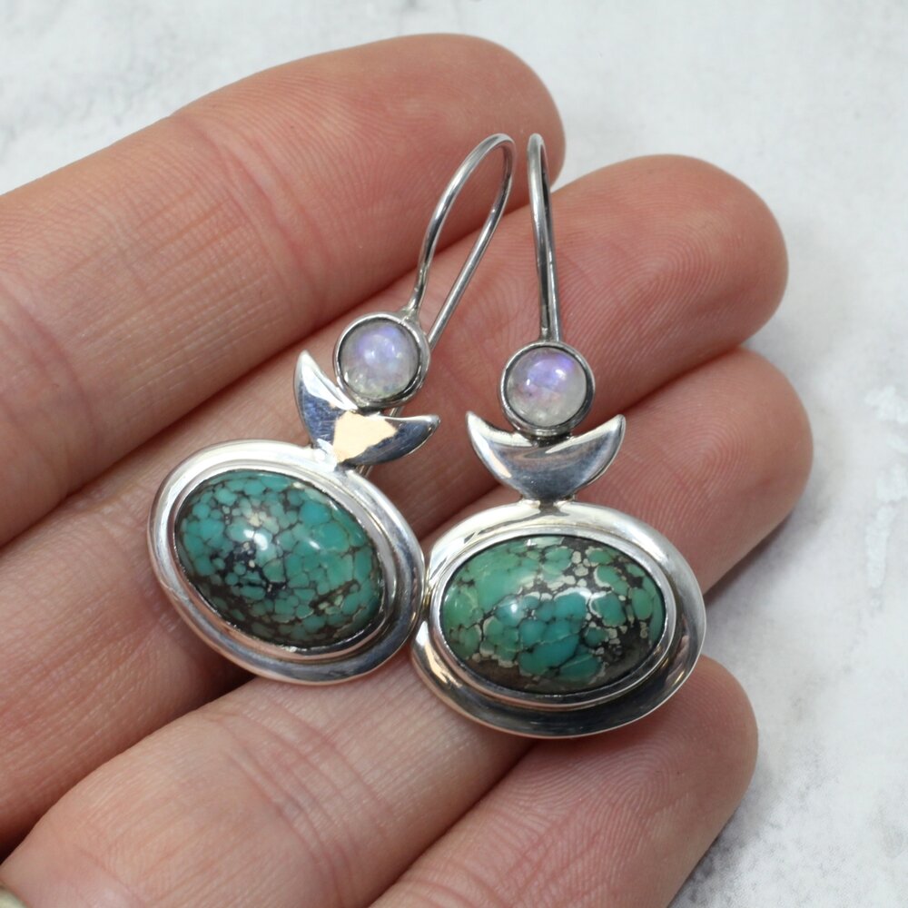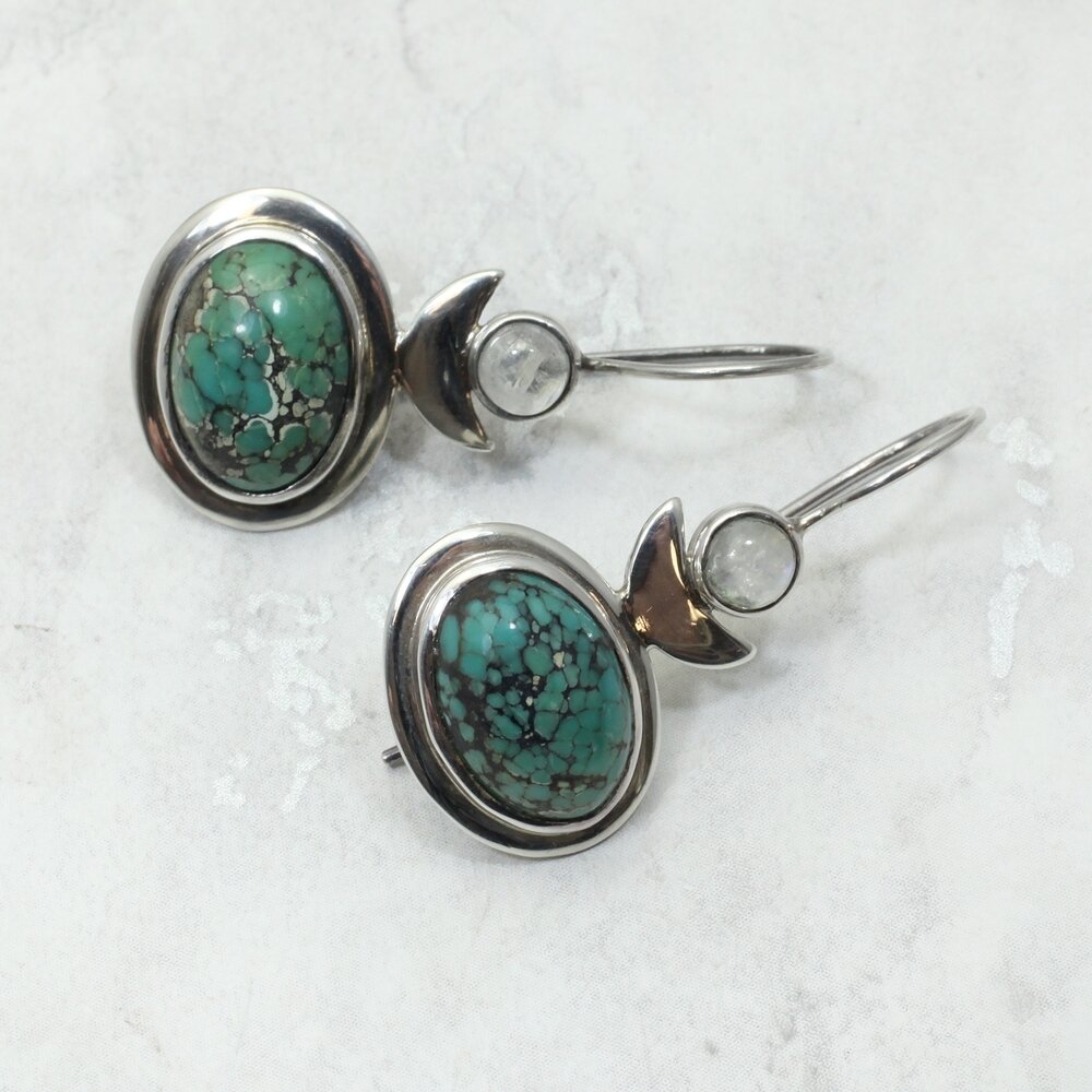 Turquoise & Moonstone 925 Silver Drop Earrings.