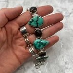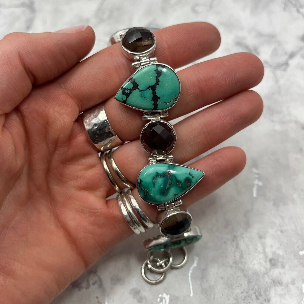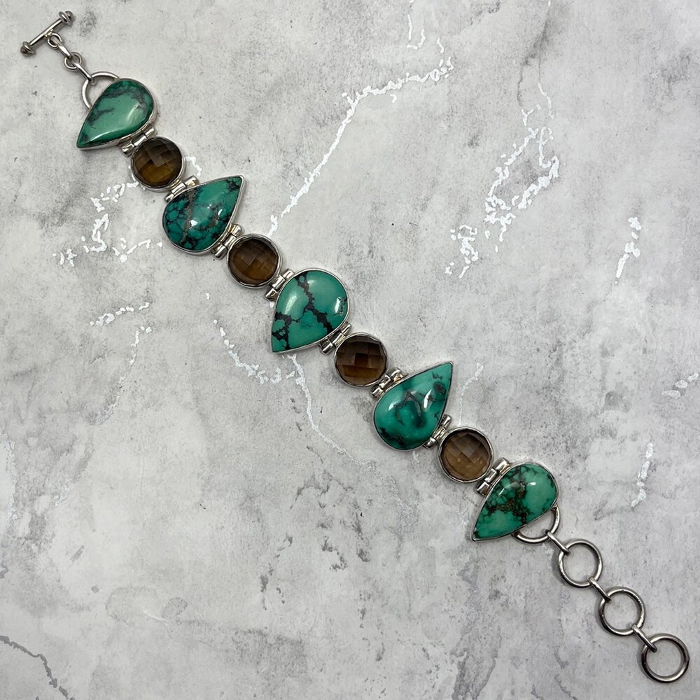 A beautiful Turquoise & Smoky Quartz 925 Sterling Silver Ornate Bracelet.