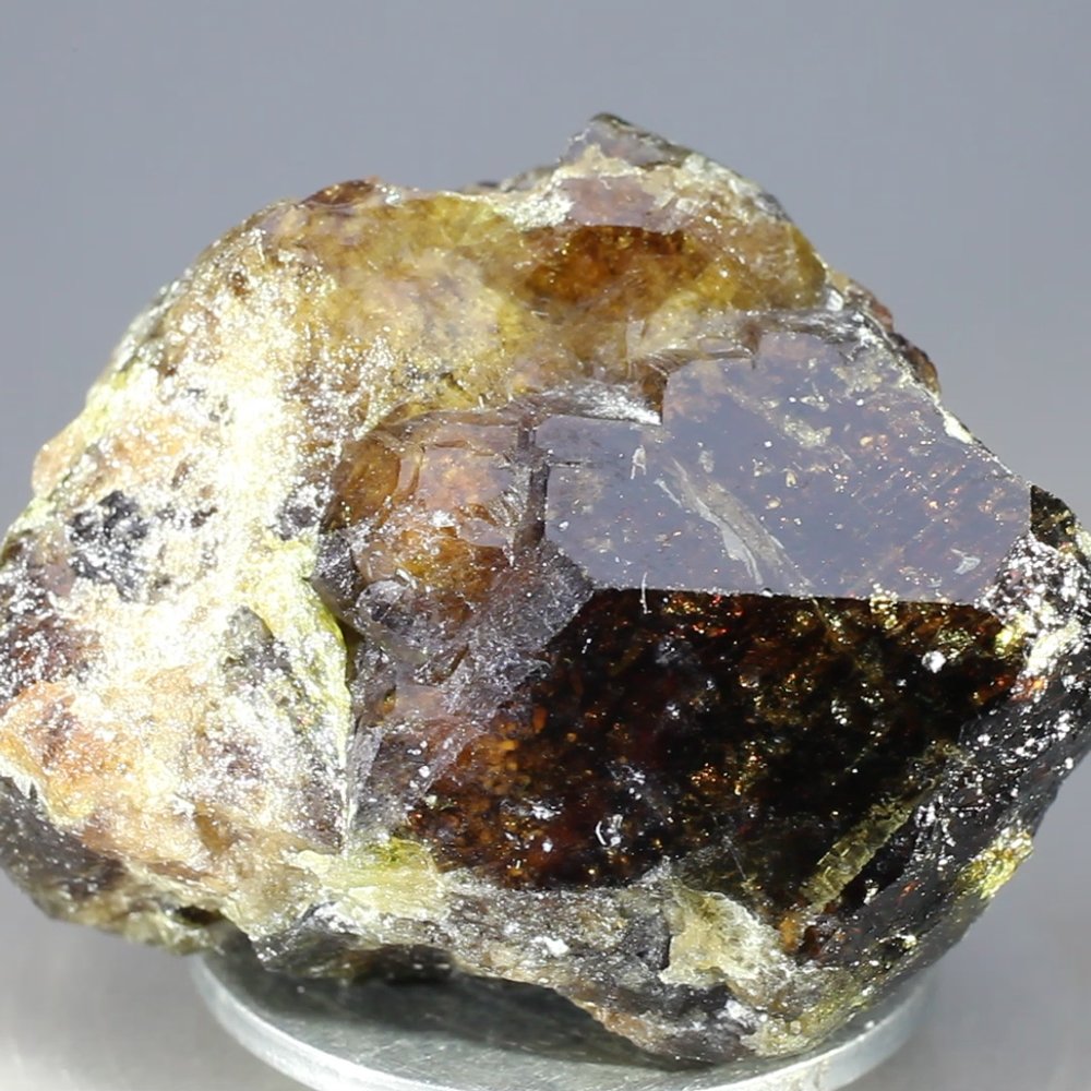 An excellent tabular crystal of rare Vesuvianite from Fushan Mine, Heibi Province, China. These brown crystals glow gemmy yellow-brown under bright light, and radiate a powerful energy.
