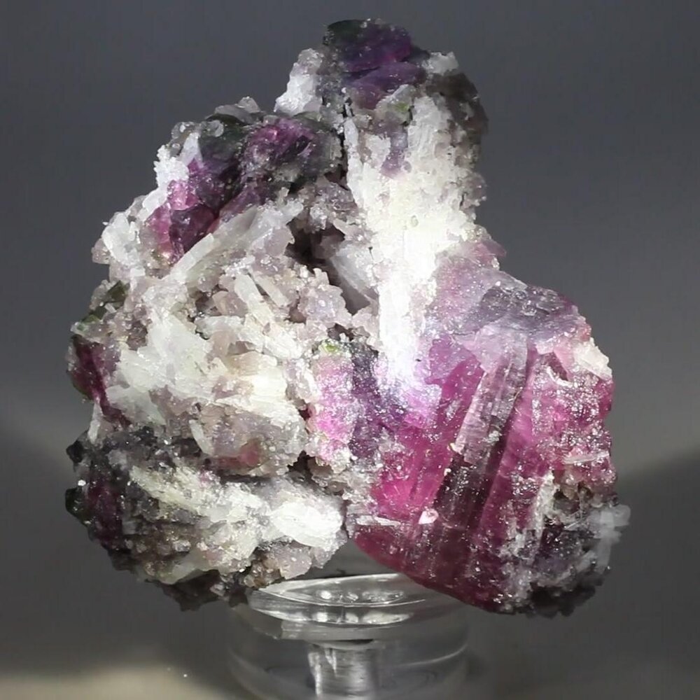 This stunning Watermelon Tourmaline & Lepidolite crystal from Brazil has been selected for its larger size and striking colours.