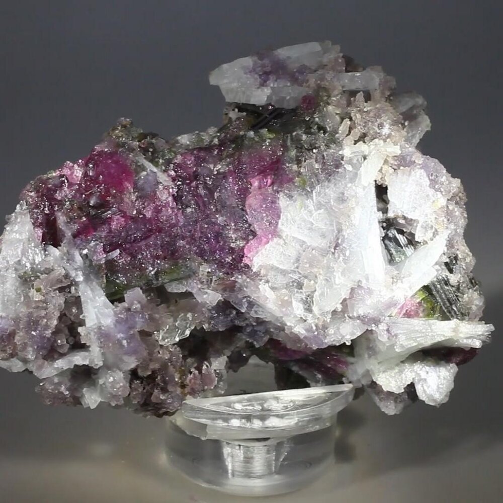 This stunning Watermelon Tourmaline & Lepidolite crystal from Brazil has been selected for its larger size and striking colours.