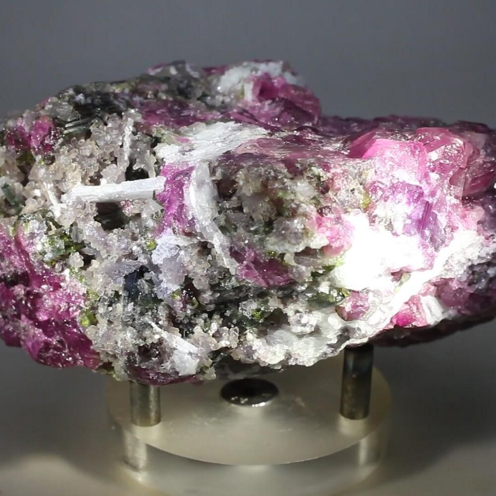 This stunning Watermelon Tourmaline & Lepidolite crystal from Brazil has been selected for its larger size and striking colours.