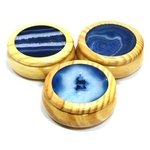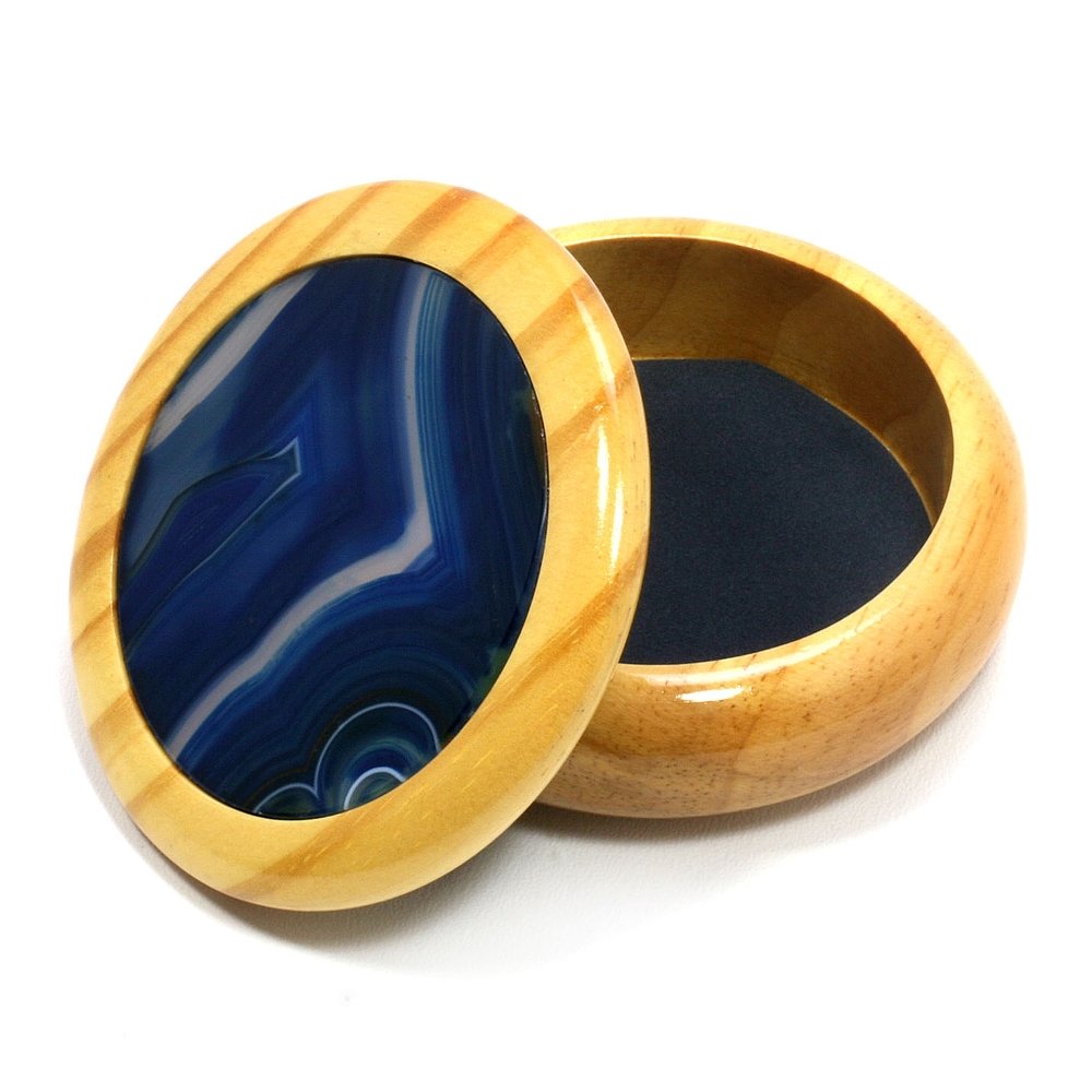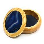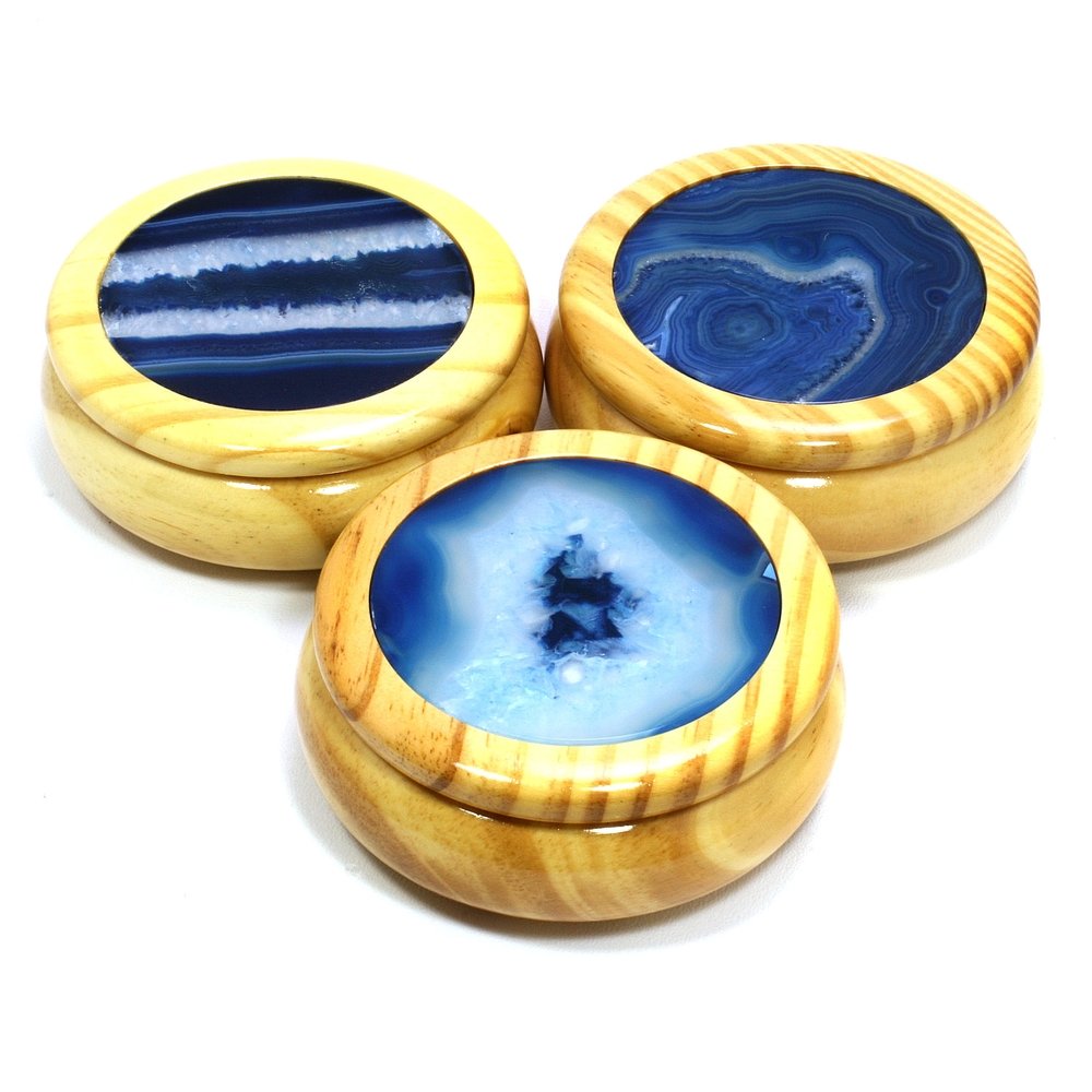 These charming Blue Agate wooden boxes make perfect jewellery boxes and are hand crafted to the highest quality.Their lids are inlaid with a beautiful, polished Agate slice. This shows off the unique banded structure of the agate.