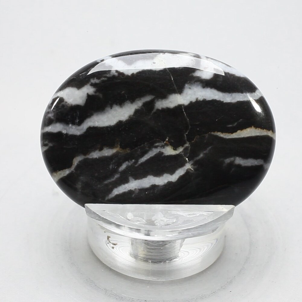 This Zebra Jasper Thumb Stone has been carefully shaped and polished with a thumb-sized indent so that you can hold them to focus on the crystal energy.
